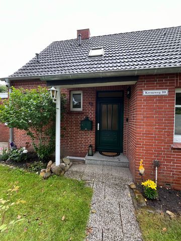 Separates Ferienhaus in ruhiger Lage im Ortsteil Oldersum. Großer Garten mit Terrasse, Fahrradunterstell- und Lademöglichkeit (Außensteckdose, keine Wallbox) und PKW-Parkplatz.