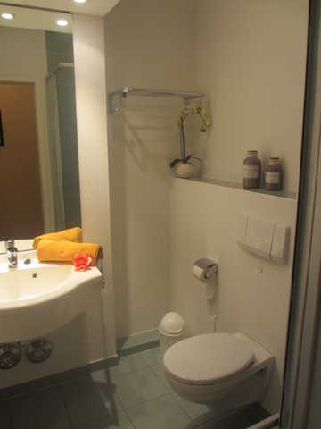 Im Wohnbereich befindet sich eine gemütliche Sitzgruppe mit Schlafsofa (im Notfall), sowie TV, DVD-Player und CD-Anlage. Ein Duschbad/WC ergänzt die Ferienwohnung.