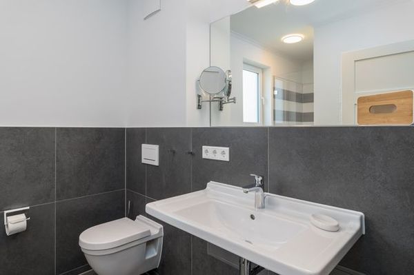 Das Bad verfügt über eine Dusche, einem Haartrockner und einem Handtuchtrockner. Zu Ihrem Apartment gehört ebenfalls ein großer und lichtdurchfluteter Wohn- und Essbereich mit offener Küche.
