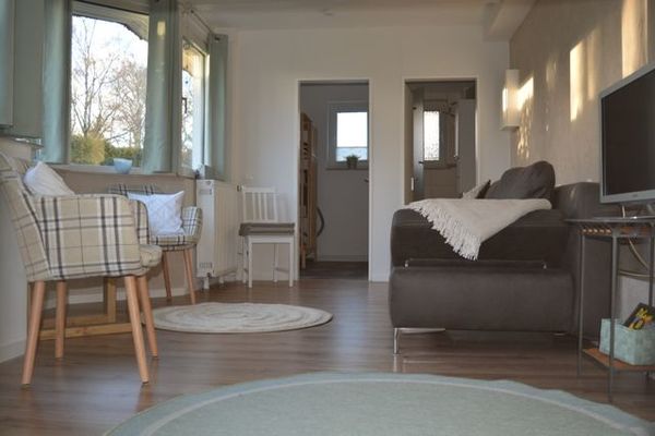 Herzlich Willkommen in unserer hellen und freundlichen Nichtraucher Wohnung mit eigenem Eingang und Terrasse mit Gartenmöbeln im Grünen,  zum verweilen. Sie haben die Möglichkeit im eingezäunten Garten Ihre Fahrräder abzustellen. Soweit verfügbar steht ein Stellplatz für Ihr Fahrzeug zur Verfügung.