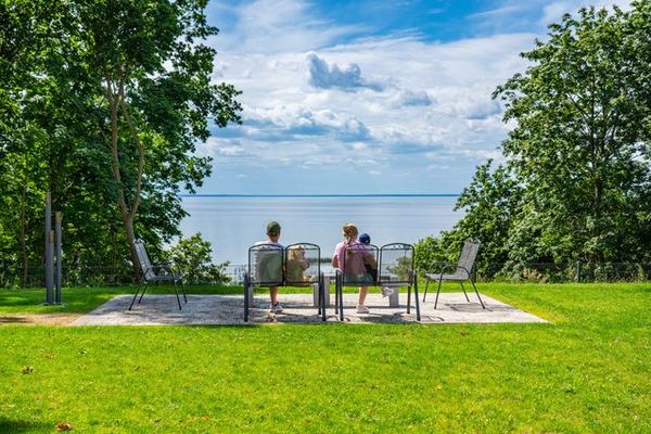 Alle Terrassenwohnungen und Apartments sind hochwertig und modern ausgestattet. Eine weitläufige Außenanlage mit einer gepflegten Rasenfläche und Gehweg zur traumhaften Haff-Terrasse umgeben unser 2024 fertiggestelltes Ferienhaus, das im Gegensatz zu allen anderen "Oase am Haff"-Häusern auf einem separaten Grundstück, ca. 400 Meter östlich der weiteren Gebäude, liegt. Die gemeinschaftlich nutzbare Haff-Terrasse lädt mit Sitzgelegenheiten an der Steilküste zum Verweilen ein.