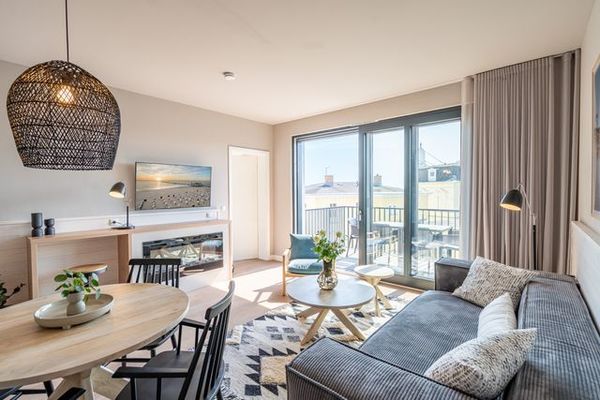 Die 2024 fertig gestellte Strandterrasse liegt direkt an der belebten Strandpromenade und bietet einen einzigartigen Ausblick auf die Grand Dame der historischen Seebrücken sowie die historische Konzertmuschel, einem beliebten Treffpunkt für Kunst und Kultur. Dahinter liegt die Ostsee – ein Panorama, das zu den schönsten in den Kaiserbädern gehört. Es ist wie das Abtauchen in eine andere Zeit. In eine Zeit, in der man mit Stock, Sonnenschirm und Hut fürs „Sehen und gesehen werden“ über die Promenade schlenderte; aber auch in eine Zeit, in der – damals wie heute – Zeit einmal für eine kurze Weile keine Rolle spielt. Weil man angekommen ist im Loslassen, Entspannen und Genießen. Es ist dieser besondere Geruch nach Meeresluft und Freiheit, der in Erinnerung bleibt. Dazu die Bilder, die man mitnimmt. Von langen Strandspaziergängen, vom Lachen in fröhlich schäumenden Ostseewellen, von der Zeit in einem wunderschönen Urlaubsdomizil. Denn genau das ist die Strandterrasse mit ihren 56 modernen und exklusiven Ferienappartements direkt gegenüber der Ahlbecker Seebrücke. Die Ein-, Zwei- oder Dreizimmerwohnungen – zwischen 40 und 70 Quadratmeter groß – sind von einer Innenarchitektin gemeinsam mit unserem Erfahrungsschatz an Gästewünschen mit viel Liebe zum Detail und ganz individuell konzipiert worden. Entspannung und Wohlfühlen stehen an erster Stelle. Alles ist aufeinander abgestimmt und sorgt für eine gemütliche Atmosphäre. Wählen Sie zwischen einem Domizil in einem hellen, sandfarbenen Designkonzept oder einem Appartement mit anthrazitfarbenen Farbakzenten. Alle Appartements verfügen gleichermaßen über eine stilvolle und komfortable Einrichtung, die passgenau angefertigt worden ist, sowie über moderne Küchen und Bäder. Jedem Schlafzimmer ist ein eigenes Bad mit Dusche zugeordnet (außer App. B4.5). Die Appartements besitzen fast alle einen Balkon – viele schauen sogar zur Ostsee hinaus. Die meisten Feriendomizile haben einen Elektrokamin und Infrarotsaunen. Im Erdgeschoss befindet sich ein separater Gemeinschaftsraum für Fahrräder. Außerdem besteht die Möglichkeit, im Gemeinschaftswaschraum 2 Waschmaschinen [&] Trockner zu nutzen. Ergänzt wird das Angebot durch eine Gemeinschaftssauna, die täglich von 11:00 bis 22:00 Uhr nutzbar ist. In der Tiefgarage (Einfahrtshöhe 2,03 Meter) steht für jede Wohnung 1 Pkw-Stellplatz zur Verfügung. Ist alles zur Zufriedenheit untergebracht? Dann kann der Urlaub ja beginnen. Und beim Blick vom Balkon über die Ostsee treffen sich zum Sonnenaufgang das Heute und das Damals. Gelassenheit legt sich beim Gang hinunter an den Strand auf die Seele. Jetzt darf die Zeit stehenbleiben.