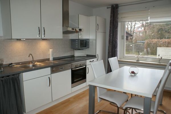 Die Küche verfügt über eine Geschirrspülmaschine, Backofen mit Ceran-Kochfeld, Mikrowelle, Kühlschrank & Gefrierfach, Kaffeemaschine, Toaster, Wasserkocher und Eierkocher. Mit einer hellen Einrichtung wirkt die Wohnung sehr einladend. Von der Küche gelangt man direkt ins Wohnzimmer die mit einem Durchbruch verbunden ist. Die Küche ist mit einer Esszimmer-Garnitur für 4 Personen eingerichtet. Das Wohnzimmer verfügt über ein Ecksofa. Hier kann man es sich vor dem Fernsehr gemütlich machen. Im Schlafzimmer lädt ein Doppelbett (180/200) zur Übernachtung ein. Der Kleiderschrank bietet genug Stauraum für die mitgebrachten Kleider. Das Badezimmer enthält eine begehbare Dusche, WC & Waschbecken inkl. Wandspiegel & kleinem Schrank. Zusätzlich gibt es noch ein Durchgangszimmer als Abstellfläche oder für ein zusätzliches Beistellbett. Handtücher & Bettwäsche werden gestellt. W-Lan-Schlüssel liegt bei Ankunft in einer Broschüre mit Infomaterial.