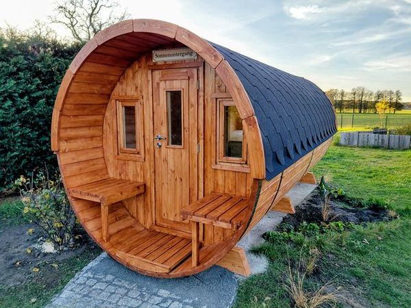 Ferienwohnung Ferienwohnung XL Schlaffass Nr 1 mit Sonnenuntergang Blick