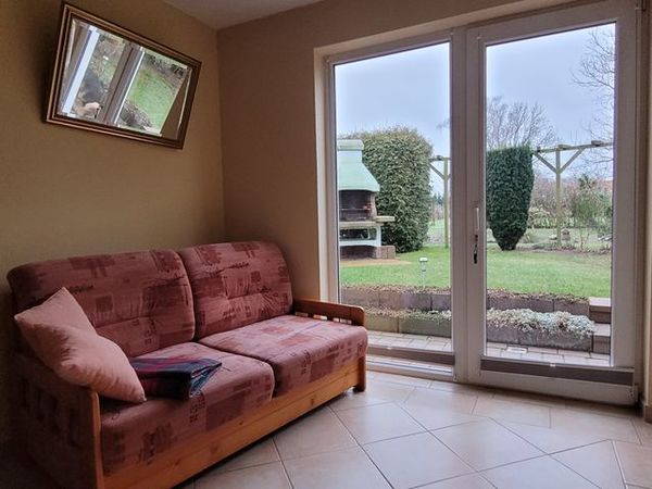 Die Ferienwohnung liegt in einem separaten Gebäude auf dem Grundstück des Vermieters. Die Wohnung wurde letztmalig 2019 renoviert, ist funkional eingerichtet und bietet eine ruhige Atmosphäre. Direkt vor dem Ferienhaus finden Sie einen großzügigen Grillplatz mit Sitzecke im separaten Gartenbereich sowie einen eigenen Parkplatz.