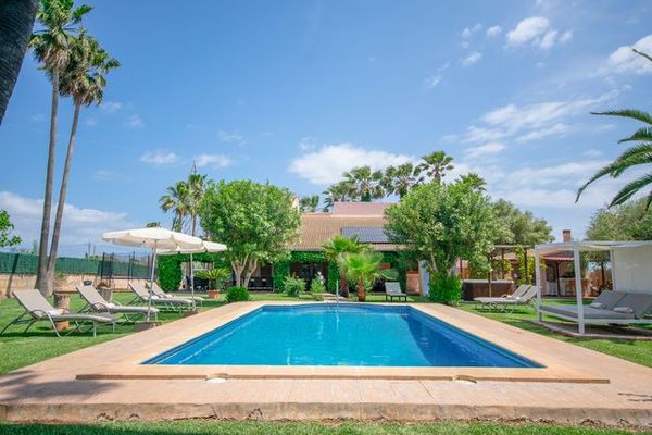 Ruhige strandnahe Finca Son Duri auch Ca Na Bisquerra genant, mit privatem Pool und privatem Tennisplatz für bis zu 8 Personen, mit Grillplatz und einem sehr gepflegtem Garten. Das Haus besteht aus 4 Schlafzimmern und 3 Bädern, sowie einem  sehr grossen Wohn/Esszimmer mit offener, angrenzender Küche. Diese ist typisch mallorkinisch, dennoch voll ausgestattet.