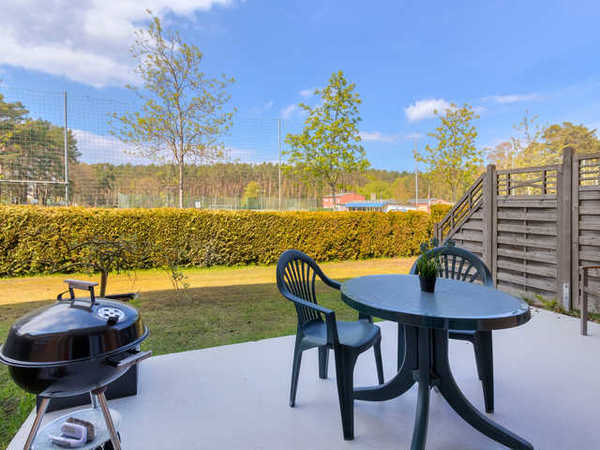 Die Wohnung ist im Erdgeschoss und verfügt über einen Wohnraum mit Küche, ein separates Schlafzimmer mit Doppelbett sowie ein Bad mit Dusche. Auf der großen Terrasse können Sie die Ruhe genießen oder den Tag ausklingen lassen.