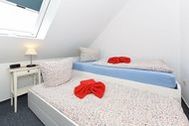 Die Wohnung befindet sich im 1. Obergeschoss. Es sind zwei Schlafräume vorhanden. Die Wohnung ist mit einem Doppelbett im Schlafzimmer und einem im seperatem Raum stehendem Einzelbett mit ausziehbarem Bettkasten mit Liegefläche ausgestattet (optimalerweise für Kinder).