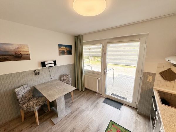 Die Nichtraucherwohnung Nr. 02 im Haus Inselperle bietet mit Ihren ca. 30 m² Platz für max. 2 Erwachsene. Der großzügige Koch- und Essbereich, welchen Sie über den Eingang betreten, ist ausgestattet mit einer vollständig eingerichteten Küchenzeile mit 4 Zonencerankochfeld, Geschirrspüler, Backofen, Kühlschrank mit Gefrierfach, Toaster, Mikrowelle, Wasserkocher, Kaffeemaschine, Padmaschine (Dolce Gusto) sowie diverse kleine Küchenhelfer. Ein angrenzender Esstisch rundet den Bereich ab. Über den kleinen Flur erreichen Sie das innenliegende Badezimmer welches mit WC, Dusche, Waschtisch mit Unterschrank, Fön, Kosmetikspiegel, großem Wandspiegel, Handtuchheizkörper und einem Ablageregal ausgestattet ist. Im daran folgenden Wohn- /Schlafbereich, welcher komplett mit einem hochwertigen Teppich verlegt wurde, erwartet Sie ein großes Doppelbett mit Einzelmatratzen (1,80 m x 2,10 m), Nachttischablagen mit Leselampen sowie einen geräumigen Kleiderschrank mit Safe für Ihre Wertsachen. Für einen erholsamen Schlaf sorgen die Verdunklungsgardinen. Zusätzlich steht Ihnen hier ein Sideboard, Stehlampe und eine kleine Sitzmöglichkeit zur Verfügung. Ein Smart-TV (43 Zoll), Mini-Stereoanlage mit CD-Player, MP3, USB und Bluetooth mit NFC sowie ein inklusiver WLAN-Anschluss runden den technischen Bereich ab. Genießen Sie Ihr Frühstück auf Ihrer bestuhlten Terrasse bei herrlichem Sonnenschein oder die Abende bei einem gemütlichen Grillabend mit dem zur Verfügung stehenden Standgrill. Ein Sonnenschirm komplettiert Ihre Terrasse (Süd/Ost). Bitte beachten Sie jedoch, dass das Grillen auf den Holzterrassen aus brandschutztechnischen Gründen nicht erlaubt ist. Hier finden Sie aber ausreichend Platz auf dem Außengelände, welches auch über einen kleinen Kinderspielplatz, Sandkiste und einer Tischtennisplatte verfügt. Ein Haustier ist gegen eine Gebühr bei uns ein gern gesehener Gast. Da Haustiere erfahrungsgemäß Ihre eigenen Sachen lieben, bringen Sie hier bitte Schlafkörbchen, Wasser- und Fressnapf mit. Sollte Ihnen doch einmal Strandsand ins Haus geraten oder etwas runterfallen, ist jede Wohnung mit einem Staubsauger und anderen Reinigungsgeräten ausgestattet. Ihre mitgebrachten Fahrräder (max. 2 ) können Sie in der der Fahrradbox 1 sicher verschließen. Die Grünfläche des Hauses lädt zu geselligen Abenden mit weiteren Hausgästen ein. Ein PKW-Stellplatz (Nr.02) steht Ihnen inklusive am Haus zur Verfügung. Die Erstausstattung eines Wäschepaketes (komplette Bettwäsche, 1 Duschhandtuch, 1 kleines Handtuch, 1 Duschvorleger) können Sie bis 14 Tage vor Anreise gegen einen Aufpreis dazu buchen oder durch eigene ergänzen. 1 Geschirrhandtuch gehört zu jedem Aufenthalt dazu.