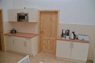 Das Wohnzimmer 31 m² groß ausgestattet mit Sitzgruppe inkl. Schlaffunktion 1,40 m x 2,0 m, Flachbild-TV, CD-Radio. Küche 10 m² mit Eßtisch für 4 - 6 Personen, Einbauküche mit Kühlschrank, Cerankochfeld mit Backofen, Geschirrspüler, Kaffeemaschine, Wasserkocher, Toaster, Mikrowelle, Geschirr, Radio. Flur 2 m² und Bad 8 m² mit WC und ebenerdiger Dusche. Bei Belegung mit mehr als 4 Personen, 2 Schlafmöglichkeiten im Wohnzimmer.