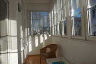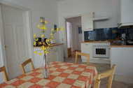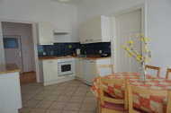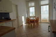 Die Wohnung 7 ist eine 3-Raumferienwohnung im ersten Geschoß, verfügt über ca. 95,00 m² Wohnfläche und ist ideal für 2 Erw. mit Kindern geeignet. Die Wohnung hat folgende Aufteilung: 2 Schlafzimmer (14m²) u.( 21m²) jeweils ausgestattet mit Doppelbett 1,80x2,00m. Wohnzimmer ( 26 m² ), Sitzgruppe mit Schlaffunktion 1,40x2,0m , TV, CD-Radio. Küche als Durchgangszimmer (ca.16m²) , Einbauküche mit Kühlschrank,4 Plattenkochfeld mit Backofen, großer Eßtisch,Geschirrspüler, Kaffeemaschine, Wasserkocher, Toaster, Geschirr, Radio. Verglaster Balkon (5m²), Flur ( 4 m² )und Bad mit Wanne und Dusche (9m²).Bei Belegung mit mehr als 4 Personen, 2 Schlafmöglichkeiten im Wohnzimmer.