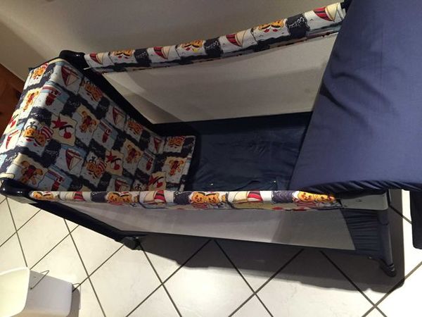 Kinderreisebett von Hauck mit Matratze und ein Kinderhochstuhl ohne
