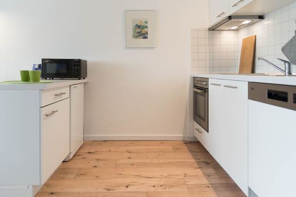 Adresse 24159 Kiel, Fliegender Holländer 29, 1. Etage, APP 170 Lassen Sie die Seele baumeln. Die geschmackvoll eingerichtete Wohnung in der Terrassenanlage bietet mit dem 15qm großen Balkon, einen Platz zur puren Erholung. Beschreibung Die hell und freundlich eingerichtete Ferienwohnung ist großzügig geschnitten und bietet ausreichend Platz für Ihren Aufenthalt. Schon der Flur bietet bei Ihrer Anreise genügend Staumöglichkeiten für Ihr Gepäck. Er verfügt neben einem großen Spiegel über eine Garderobe und eine kleine Abstellkammer. Vom Flur aus gelangen Sie in das 1-Zimmerappartment. Die Ferienwohnung verfügt in ganzer Breite über eine bodentiefe Fensterfront und einen dementsprechend langen Balkon. Die südwestliche Ausrichtung des Balkons mit Blick ins Grüne lässt Sie fast den ganzen Tag über Sonne haben. Eine Markise, sowie Gartenmöbel stehen Ihnen zur Verfügung, so kann auch bis in die Abendstunden hinein der Tag und die Sonne auf dem Balkon genossen werden. Im gesamten Appartment ist ein schöner Holzfußboden verlegt worden. Es entstehen in der großflächigen Wohnung durch Regale, die als Raumtrenner dienen, verschiedene Bereiche: Wohn-, Ess-, Schlaf-, und Küchenbereich. Dies verleiht der Ferienwohnung einen gemütlichen Charme. Die Ferienwohnung ist mit einer Wohnküchenzeile ausgestattet. Neben der Grundausstattung wie einem Backofen, Cerankochfeld, Wasserkocher, einer Kaffeemaschine und ausreichend Geschirr, ist auch eine Geschirrspülmaschine vorhanden. Mit dieser Ausstattung steht einer selbstgemachten Mahlzeit nichts mehr im Wege. Ein Küchenschrank als Tresen grenzt die Küche geschickt vom Wohnbereich ab. Direkt am Fenster befindet sich ein bequemer Sessel, sowie eine Couch, die mit wenigen Handgriffen als Schlafmöglichkeit für eine dritte Person umfunktioniert werden kann. Schöne Couchbezüge, sowie ein großer Couchtisch und ein Fernseher tragen zum Wohlfühlfaktor dieser Wohnung bei. Gegenüber vom Wohnbereich befindet sich am Fenster der Essbereich mit einem großen Esstisch und Stühlen für bis zu 4 Personen. Der Schlafbereich ist durch Regale vom Eingangsbereich, sowie vom Essbereich optisch getrennt. In diesem Rückzugsort haben Sie zusätzlich durch die Regale genügend Ablage- und Verstaumöglichkeiten. Das gemütliche Doppelbett ist von beiden Seiten begehbar und hat die Maße 180cm x 200cm. Das moderne Badezimmer ist vom Flur aus zu erreichen und ist auch mit Holzfußboden ausgelegt. Neben einer Dusche, einem WC, Waschbecken und einem großen Spiegel verfügt das Badezimmer zusätzlich über eine Waschmaschine. Besonderheiten In der Ferienwohnung steht Ihnen kostenlos WLAN zur Verfügung. Diese Ferienwohnung ist eine Nichtraucherwohnung. Geraucht werden kann gerne auf dem Balkon vielen Dank für Ihr Verständnis. Tiere sind in der Wohnung nicht gestattet. Ihren PKW können Sie auf dem hauseigenen PKW-Stellplatz parken. Es besteht zusätzlich die Möglichkeit Fahrräder in einem abgeschlossenen Außenbereich unterzustellen.
