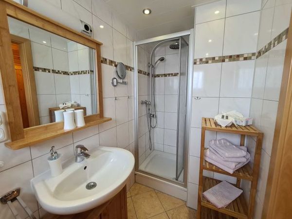 Das schicke Badezimmer mit Rain-Duschbrause verleihen dem Haus das gewisse Etwas.