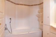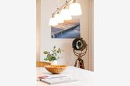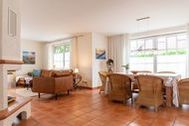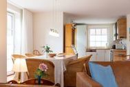 Große Erdgeschosswohnung, offener Wohnraum mit kompletter Einbauküche, einem großen Esstisch mit sechs Korbsesseln und einer Sofagarnitur. 1 Schlafzimmer mit Doppelbett und angeschlossenem Bad (Badewanne/WC). 1 Schlafzimmer mit Doppelbett. Bad mit Dusche und WC. Kamin, Sat-TV. Kinderreisebett. Wäschepaket (Bettwäsche und Handtücher) ist zubuchbar.