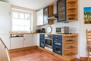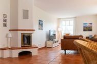 Offener Wohnraum mit kompletter Einbauküche, einem großen Esstisch mit sechs Korbsesseln und einer Sofagarnitur. 1 Schlafzimmer mit Doppelbett und angeschlossenem Bad (Badewanne/WC). 1 Schlafzimmer mit Doppelbett. Bad mit Dusche und WC. Kamin, Sat-TV. Kinderreisebett. Wäschepaket zubuchbar.