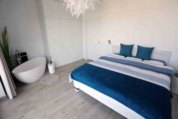 2 Balkone mit Gartenmöbeln1 Schlafzimmer mit Doppelbett und Badewanne