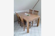 Tisch mit 4 Stühle, Kaffeemaschine, Wasserkocher, Ceranfeld, Backofen, Spülmaschine, Kühlschrank mit Gefrierfach u.v.m.