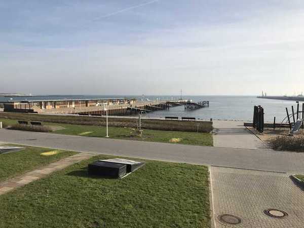 Vom Wohnzimmer mit Balkon aus genießen sie einen traumhaften Ausblick auf den Südstrand, die Reede, die Düne und Richtung Hafen. Zentral gelegen, kurze Wege zu Lokalen, Geschäften sowie Edeka Markt.