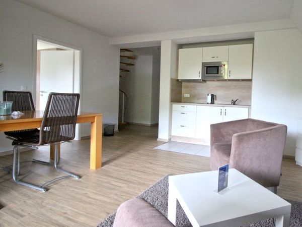Das 3-Raum Appartement ist komfortabel ausgestattet mit 1 Wohnraum mit Sitzecke (ausziehbare Couch für zwei Pers.), Sat.-TV und Telefon, 1 Schlafraum mit 2 Doppelbetten, 1 weiterer Schlafraum über eine Wendeltreppe erreichbar (2 Pers.). Dusche/WC, Lage: 1. Obergeschoss. Darüber hinaus gehört zu jeder Wohnung ein Pkw-Stellplatz. Alle Appartements inklusive Energiekosten, Wasser, Bettwäsche / Handtücher und Endreinigung. Babybett und Hochstuhl kostenlos.