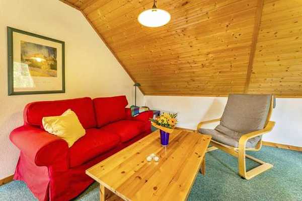 Bei der Ferienwohnung Typ "Lerche" handelt es sich um eine Ferienwohnung im Obergeschoss eines Ferienhauses mit einer Größe von 50 qm, für 4 Personen.