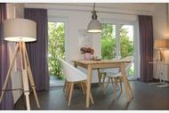 Genießen Sie den Blick in den liebevoll angelegten Garten und der Terrasse. Eine harmonische Erweiterung des Wohnraums. Stilvolle Gartenmöbel mit skandinavischen Stoffen vollenden die Harmonie des Gartens.