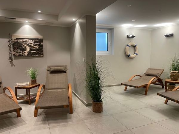 Im Untergeschoss des Villen-Ensembles befinden sich ein Wellnessbereich mit einer Gemeinschaftssauna (kostenpflichtig). Außerdem gibt es im unteren Bereich des Hauses ein Waschraum mit Waschmaschine und Trockner (gegen Gebühr) sowie einen Abstellraum für Fahrräder.