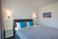 Diese luxuriöse 4-Zimmer-Wohnung im Erdgeschoss von Haus 7 mit Platz für maximal 6 Personen verfügt über eine Wohnfläche von 100 m² und hat 3 Schlafzimmer sowie 2 voll ausgestattete Duschbäder. Die große Sonnenterrasse mit 21 m² liegt in idealer Süd-Ausrichtung. Die Wohnung ist modern eingerichtet mit offenem Wohn-Essbereich, großem Esstisch, Ledersofa sowie Smart-TV (inkl. Sky-Abo). Die hochwertig ausgestattete Küche, offen zum Wohnbereich, lässt keine Wünsche offen. Erholsamer Schlaf in den beiden Schlafzimmern mit Boxspringbetten und Smart-TV ist garantiert. Im dritten Schlafzimmer befindet sich ein bequemes Schlafsofa (Liegefläche: 1,60 x 2,00 m) und ein Smart-TV. Das Badezimmer en Suite ist mit einer begehbaren Dusche ausgestattet. Auf der großen, überdachten Sonnenterrasse mit Essgruppe und jeweils zwei Relax-Sesseln samt Fußhockern, Sonnenschirm und Sonnenliegen können Sie die Seele baumeln lassen.