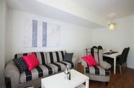 Dusche/WC, Kabel/Sat, Terrasse, Tiere willkommen, Nichtraucher, Waschmaschine, Spülmaschine, Trockner, Mikrowelle, Kühlschrank, Backofen, Heizung, Gefriermöglichkeit, TV - Flachbild, Küche (offen), Wohn/Schlafraum komb., Doppelbett, Kaffeemaschine, Toaster, Wasserkocher