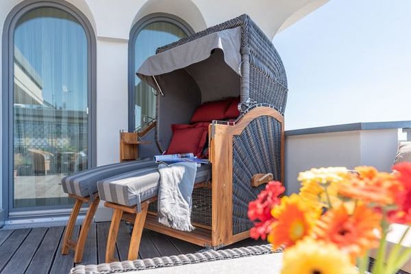 Strandnahe 2-Raum-Penthouse-Wohnung für max. 3 Erwachsenen und 1 Kleinkind, große Dachterrasse (Balkon) mit Strandkorb und traumhaftem Ostseeblick im 3.OG. Treten Sie ein in den hellen, lichtdurchfluteten Wohnraum. Massivholzmöbeln aus Erlenholz geben dem Raum ein warmes angenehmes Flair. Hingucker ist die gemütliche Leder-Sitzgarnitur, welche in wenigen Handgriffen zu einer Schlafgelegenheit für eine dritte Person umgewandelt werden kann (Liegefläche 140 x 200 cm). Ein TV- Gerät und ein CD-Player sorgen für bunte Unterhaltung. Angrenzend an den Wohnbereich befindet sich der Essbereich mit voll eingerichteter offener Einbauküche (Geschirrspüler, Ceran-Kochfeld, Backofen, Kühlschrank mit Gefrierfach, Espressomaschine, Wasserkocher, Eierkocher und Toaster). Im Schlafzimmer sorgt ein Doppelbett mit hochwertigen Kaltschaummatratzen und verstellbaren Lattenrosten für schöne Urlaubsträume. Ein geräumiger Kleiderschrank birgt ausreichend Stauraum für Ihr mitgebrachtes Gepäck. Das elegante Duschbad verwöhnt Sie mit einer bodengleichen Dusche, inklusive Regenbrause. In einem separaten Abstellraum befinden sich Staubsauger, Bodenwischer, Eimer, Handfeger, Besen, Kehrblech und Wäscheständer sowie ein Einbauschrank mit Hotelsafe. In allen Räumen wurde eine Fußbodenheizung installiert. Highlight der Wohnung ist die großzügige Dachterrasse (Balkon) mit Süd-West-Ausrichtung. Ausgestattet mit Terrassenmöbeln und einem großen Strandkorb lassen sich hier erholsame Sonnenstunden und unvergessliche Sonnenuntergänge genießen. Die Unterkunft liegt nur 50 m vom Ostseestrand entfernt. Zur Wohnung gehören zudem ein kostenfreier Tiefgaragenstellplatz und eine Abstellmöglichkeit für Fahrräder. Bitte beachten Sie die Durchfahrtshöhe von max. 1,90 m der Tiefgarage. Mit einem Personenaufzug gelangen Sie von der Tiefgarage aus direkt zu Ihrer Wohnung. Im Erdgeschoss der Wohnung befindet sich ein gekennzeichneter Abstellbereich für Kinderwagen. Das kostenfreie WLAN in der Unterkunft ist ausschließlich für die Verwendung von Social Media und den Austausch von Bildern mit Familie und Freunden gedacht. Die Nutzung zum Streamen von Filmen ist nicht vorgesehen. Hier noch einige Hinweise: Es handelt sich um eine Nichtraucherwohnung. Es sind keine Haustiere erlaubt. Die Kosten der Bettwäsche und Handtücher Erstausstattung sind inklusive. Eine Waschmaschine und ein Trockner stehen im separaten Hauswirtschaftsraum im Untergeschoss der Villa zu Ihrer Verfügung (gegen Gebühr / 1,00 Euro Münzen). Buchungen in der Neben- und Zwischensaison sind ab 4 Übernachtungen möglich. In der Hauptsaison gilt ein Mindestaufenthalt von 7 Übernachtungen. Ein Kinderreisebett und ein Kinderhochstuhl können kostenpflichtig zugebucht werden. Sichern Sie sich zusätzlich einen der begehrten Strandkörbe nur ein paar Meter entfernt von den rauschenden Wellen der Ostsee (Anfang Mai - Ende August) und buchen Sie jetzt zu besonderen Konditionen (12,00 Euro pro Tag oder 75,00 Euro pro Woche).