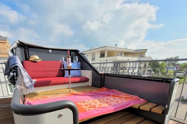 Ab September 2025 finden Fassadenarbeiten an diesem Haus statt. Strandnahe 3-Raum-Penthouse-Wohnung für vier Personen, Balkon (große Dachterrasse), Strandkorb und seitlichem Meerblick im 2. OG. Der moderne, lichtdurchflutete Wohnraum empfängt Sie mit einer gemütlichen Leder-Ecksitzgruppe, einem Couchtisch sowie einem Flatscreen-TV mit Blu-ray- / DVD-Player und einer HiFi-Anlage (mit kabelloser Wiedergabe vom eigenen Smartphone/Tablet). Ein großer Tulip-Esstisch mit Stühlen lädt zu gemeinsamen Mahlzeiten ein. Die hochwertig eingerichtete Einbauküche ist voll ausgestattet mit Geschirrspüler, Kühlschrank, inklusive Gefrierfach, Backofen, Mikrowelle, Induktions-Kochfeld, Dunstabzugshaube, Kaffeemaschine, Wasserkocher und Toaster. Zwei modern eingerichtete Schlafzimmer empfangen Sie jeweils mit bequemem Doppelbett (hochwertige Kaltschaum-Matratzen/ getrennt 180 x 200 cm. Die Wohnung ist mit je 4 Sets an Standardbettdecken 135 x 200 cm und Komfort Bettdecken 155 x 220 cm ausgestattet. (Bitte beachten Sie: Für die Komfort Bettdecken kann keine Bettwäsche gestellt werden.) Ein raumhoher Kleiderschrank bietet ausreichend Platz für Ihr Gepäck. Eines der Schlafzimmer verfügt über einen eigenen Zugang zur Terrasse. Das andere ist mit einem Sound-System sowie einem angrenzenden Wannenbad ausgestattet. In der Unterkunft befindet sich zudem ein zweites Bad mit bodengleicher Walk-In Regendusche, großer Spiegelfront, Föhn und einem Fenster, durch das Sie die Morgensonne begrüßt. Das einzigartige Penthouse-Highlight ist die 70 qm große Dachterrasse (Balkon) in Süd-West-Lage. Dort verwöhnt Sie die Sonnen den ganzen Tag. Neben einer Esstischgruppe und einem Sonnenschirm stehen Ihnen von März bis Oktober außerdem eine Chillout-Lounge und exklusiv der vermutlich größte Strandkorb zwischen Wismar und Warnemünde zur Verfügung. Von hier genießen Sie einen wunderschönen Blick auf die Ostsee. Bei gutem Wetter kann hier sogar unter freiem Himmel übernachtet werden! Bitte den Schlafsack und ein zusätzliches Laken (140 x 200 cm) nicht vergessen. Die Wohnung ist mit raumhohen Fenstern und Blindouts ausgestattet. Die Fußbodenheizung sorgt für wohlige Wärme in allen Räumen. Ein separater Abstellraum bietet Stauraum für Ihre Urlaubskleidung. Zu Ihrer Ferienwohnung gehört ein kostenfreier Tiefgaragenstellplatz. Bitte beachten Sie die Durchfahrtshöhe von max. 1,90 m. Der im Gebäude installierte Aufzug erleichtert den Transport der mitgebrachten Koffer. Über den Innenhof der Villa erreichen Sie den abschließbaren Fahrradraum sowie den angrenzenden Waschraum. Eine Waschmaschine und ein Trockner stehen zu Ihrer Verfügung (gegen Gebühr / 1,00 Euro Münzen). Im Erdgeschoss finden Sie eine Eisdiele und ein Restaurant. In der Nähe außerdem ein Kaufmannsladen mit Backshop, diversen Strand- und Souvenirartikeln sowie einen Fahrradverleih. Der beliebte Ostsee-Rad-Wanderweg beginnt vor der Haustür. Bei herrlichen Fahrradtouren erreichen Sie die bekannten Seebäder Heiligendamm (3 km), Kühlungsborn (8 km), Nienhagen (4 km) und Warnemünde (13 km). Hier noch einige Hinweise: Es handelt sich um eine Nichtraucherwohnung. Es sind keine Haustiere erlaubt. Ab der dritten und vierten Person wird ein Aufpreis in Höhe von 10,00 Euro/ÜN pro Person berechnet. Wäscheset, Kinderreisebett und Kinderhochstuhl können kostenpflichtig zugebucht werden. Das kostenfreie WLAN in der Unterkunft ist ausschließlich für die Verwendung von Social Media und den Austausch von Bildern mit Familie und Freunden gedacht. Die Nutzung zum Streamen von Filmen ist nicht vorgesehen. Sichern Sie sich einen der begehrten Strandkörbe nur ein paar Meter entfernt von den rauschenden Wellen der Ostsee (Anfang Mai - Ende August) und buchen Sie jetzt zu besonderen Konditionen (12,00 Euro pro Tag oder 75,00 Euro pro Woche).