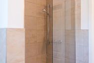 Ein Boxspringbett im Schlafzimmer bringt einen ruhigen, erholsamen Schlaf. Das Bad ist mit einer bodengleichen Dusche und einen Föhn ausgestattet.
