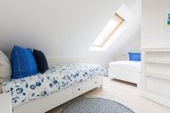 Die beiden Schlafzimmer befinden sich im Obergeschoss welches Sie durch eine Wendeltreppe erreichen. Eines der Schlafzimmer verfügt über ein großes bequemes Doppelbett.Das andere Schlafzimmer ist mit zwei komfortablen Einzelbetten ausgestattet, welche traumhaften erholsamen Schlaf garantieren.