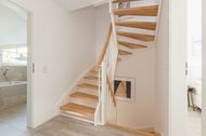 In Zingst wohnen Sie in einer Doppelhaushälfte über drei Etagen. 3,5 Schlafzimmer, 2 Zimmer sind mit einem Doppel-Boxspringbett und 2 mit Einzelbetten ausgestattet. Insgesamt finden hier 7 Personen ihren Platz. Das Ferienhaus Hus Zeeskahn hat 2 hochwertige Bäder, eines davon hat neben der bodengleichen Dusche, eine Badewanne und auch eine eigene Sauna.