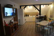 Es erwartet Sie eine modern eingerichtete 50m² große Wohnung im 1. OG mit offener Wohnküche inkl. Sitzecke, Smart-TV, WLAN-Radio, DVD/CD-Player, Bad/WC, Wohnbereich mit Schlafcouch sowie Schlafzimmer mit Doppelbett.