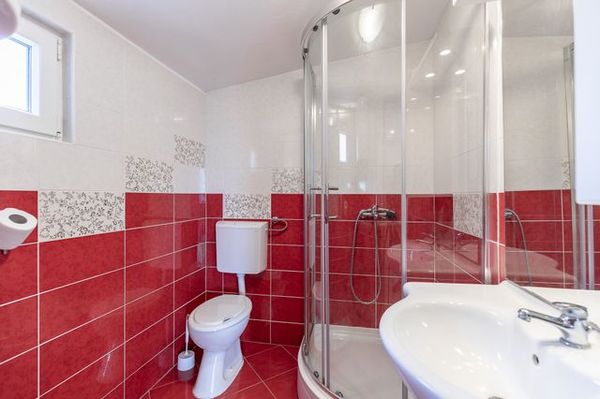 Das Ferienhaus Bojo auf der Insel Vir, verfügt über komfortable Ferienwohnungen in Strandnähe. Die auf der ersten Etage liegenden 45 qm große Ferienwohnung mit Balkon, bietet Platz für bis zu 4 Personen. Die Wohnung ist ausgestattet mit einem Duschbad, einem Doppelbett Schlafzimmer und einem Wohnbereich mit gut ausgestatteter Küche mit Essbereich. Den Balkon können Sie direkt über den Wohnbereich betreten. In der klimatisierten Ferienwohnung steht Ihnen W-LAN kostenfrei zur Verfügung. Haustiere sind nicht gestattet. Der Grill im Hof darf gerne genutzt werden. Ausreichend PKW Stellplätze sind gegeben.