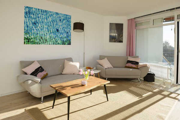 Der "Ankerplatz 57" ist ein geschmackvoll eingerichtetes 2-Zimmer-Apartment im 3. Stock. Vom Parkplatz gelangt man über eine Treppenhausanlage zur Wohnung.