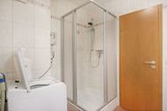 Zugehörig ist ein Duschbad mit Waschtisch, Handtuchheizung und WC. Auch eine Waschmaschine kann gegen Gebühr im Münzbetrieb genutzt werden.