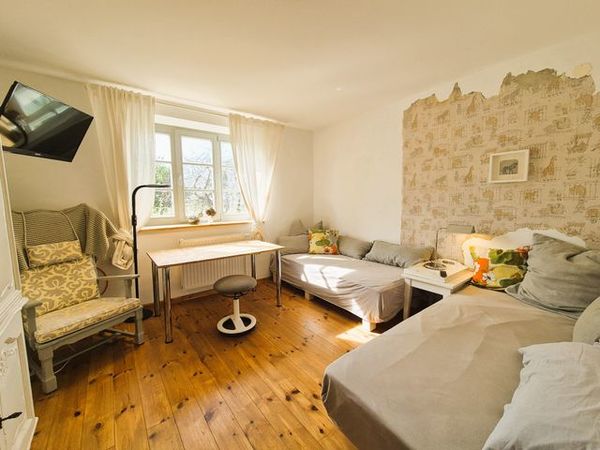 Im Eingangsbereich des Hauses empfängt Sie ein kleiner Flur mit Garderobe und Schuhablage. Vom Flur aus gelangen Sie in die offene Wohnküche mit Essplatz und Blick in das Kaminzimmer, wo sich ein gemütlicher Lesebereich mit zwei Sesseln befindet. Das helle und freundlich gestaltete Wohnzimmer schließt sich dem Kaminzimmer an mit Couchlandschaft, 2. TV, weitem Blick über das Land und einem Prinzessinnenbett für eine 5. Person. Im ersten Schlafzimmer befinden sich 2 Einzelbetten, Schrank und TV, dazu gehörig das Badezimmer mit ebenerdiger Dusche und WC. Im zweiten Schlafzimmer erwartet Sie ein 1,60 m breites Doppelbett, Nachttisch, Schrank und Kleiderablage und der Zugang zum Bad mit Wanne und WC. WLan ist vorhanden. Die gesamte Ausstattung ist neu und modern, aber auch eine "Rettung" alter aber stilvoller Möbelstücke. Das Gesamtbild hat definitiv Wohlfühlcharakter und ist ein Kraftort.