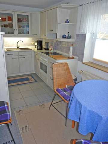 Die Ferienwohnung befindet sich im 1. Obergeschoss/Dachgeschoss eines Einfamilienhauses. Eine 12 stufige Treppe führt von der Eingangsdiele in die Wohnung. Über den Flur erreichen Sie alle Räume. Das Wohnzimmer (15 qm) bietet Ihnen eine Couch (ausziehbar) mit 2 Sesseln und Flach-TV. Die separate Einbauküche (13 qm) ist u. a. ausgestattet mit Backofen, Cerankochfeld, Mikrowelle und einem Esstisch sowie einer Vorratskammer. Im Schlafzimmer (11 qm) steht ein Doppelbett (1,60 m breit) mit zwei getrennten Matratzen, Nachttisch und Kleiderschrank. Das Badezimmer (4 qm) beinhaltet einen Waschtisch, Toilette und Badewanne mit Duschvorrichtung. Die Ausstattung ist gepflegt und gemütlich.