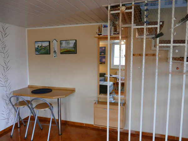 Das Ferienhaus über 2 Ebenen ist neuwertig und gemütlich eingerichtet. Im Erdgeschoss befindet sich ein Wohnzimmer und TV, die Einbauküche und ein modernes Bad mit Dusche und WC (Renovierung 2018). Der Schlafraum mit einem Doppel- und einem Einzelbett befindet sich im Obergeschoss=Dachgeschoss. Eine überdachte Terrasse lädt zum Verweilen im Garten ein. Die Couch im Wohnzimmer kann nicht aufgebettet werden.