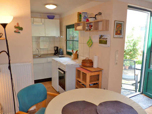 Dei kleine Ferienwohnung befindet sich komplett im Erdgeschoss. Im kombinierten Wohn-/Schlafraum befinden sich zwei getrennt stehende Polsterbetten. Eine Kochnische mit Herd und Backofen ist offen zum Wohn-/Schlafraum. Das Badezimmer ist mit Dusche/WC ausgestattet. Die Einrichtung ist zweckmäßig. KEIN PRIVATPARKPLATZ FÜR DIE FEWO VORHANDEN. ÖFFENTLICHE PARKPLÄTZE IN DER NÄHE (ZUM BEISPIEL "UNTER DER HERRENSEEBRÜCKE").