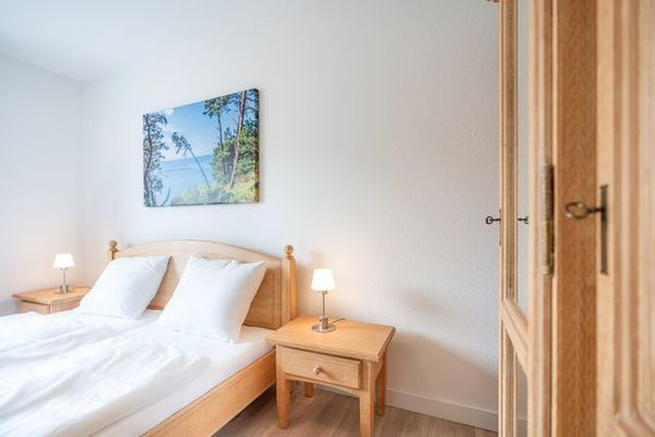 Der behagliche Wohnraum mit einer gemütlichen Sitzecke und einem Fernseher, sowie die komplett eingerichtete, offene Küche bieten einen guten Ort um sich gemeinsam in der Wohnung zu entspannen. Durch die zwei Schlafzimmer, gibt es jedoch auch einen ruhigen Rückzugsort um abzuschalten. Ein Schlafzimmer ist mit einem Doppelbett ausgestattet und eins mit zwei Einzelbetten. Das Badezimmer besitzt eine Dusche und ein WC. Auf dem Balkon können Sie gemütlich den Abend ein- und ausklingen lassen. WLAN ist vorhanden. Waschmaschine und Trockner können Sie gegen Entgelt verwenden. Natürlich stellen wir Ihnen ein PKW-Parkplatz vor dem Haus zur Verfügung. Zum feinsandigen, weißen Badestrand sind es nur ca. 3-4 Gehminuten.