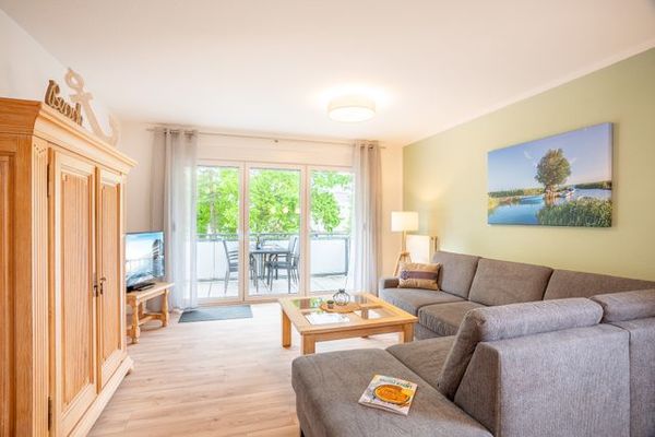 Der behagliche Wohnraum mit einer gemütlichen Sitzecke und einem Fernseher, sowie die komplett eingerichtete, offene Küche bieten einen guten Ort um sich gemeinsam in der Wohnung zu entspannen. Durch die zwei Schlafzimmer, gibt es jedoch auch einen ruhigen Rückzugsort um abzuschalten. Ein Schlafzimmer ist mit einem Doppelbett ausgestattet und eins mit zwei Einzelbetten. Das Badezimmer besitzt eine Dusche und ein WC. Auf dem Balkon können Sie gemütlich den Abend ein- und ausklingen lassen. WLAN ist vorhanden. Waschmaschine und Trockner können Sie gegen Entgelt verwenden. Natürlich stellen wir Ihnen ein PKW-Parkplatz vor dem Haus zur Verfügung. Zum feinsandigen, weißen Badestrand sind es nur ca. 3-4 Gehminuten.