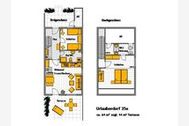 Herzlich willkommen im 3- Zimmer Ferienhaus -Jella- im Urlauberdorf 35a. Das Reihenhaus mit Terrasse verfügt über eine komfortable Ausstattung und empfängt auf einer Wohnfläche von 64qm maximal 6 Personen. Wir empfehlen die Belegung mit bis zu 4 Personen. Im Erdgeschoß erwartet Sie ein moderner Wohn-/Essbereich mit einem ausziehbaren Sofa, welches zwei zusätzliche Schlafgelegenheiten bietet. Ein Ruhesessel mit Fußhocker lädt zum Entspannen ein. Ihre Mahlzeiten können Sie an einem Esstisch einnehmen. Für Unterhaltung sorgen ein Flachbild Fernseher- DVD, wie auch eine Musikanlage und Spielesammlungen. WLAN steht Ihnen kostenfrei zur Verfügung. Die Wohnküche ist integriert und vollständig ausgestattet mit Ceranfeldherd, Backofen, Dunstabzug, Mikrowelle, Geschirrspüler sowie Kaffeemaschine, Toaster, Wasserkocher u.v.m. Vom Wohnbereich gelangen Sie auf die sonnige Terrasse, die saisonabhängig möbliert ist. Ebenso befindet sich auf der unteren Ebene ein Schlafzimmer mit zwei Einzelbetten und Kleiderschrank. Im modernen Duschbad, wo auch eine Waschmaschine bereitsteht, starten Sie vergnügt in den Urlaubstag. Über eine Treppe gelangen Sie in das Obergeschoss mit einem weiteren Schlafzimmer, das mit einem Doppelbett, Kleiderschrank, Fernseher und einem Kinderbett möbliert ist. Zudem befindet sich ein Gäste- WC auf dieser Etage. Für kleine Kinder steht ein Hochstuhl im Haus bereit und auch ein Bollerwagen kann gerne genutzt werden. Der Bodenbelag der Wohn-/Schlafräume ist mit Laminat verlegt. Kostenfrei können Sie Ihren PKW am Haus parken. Mitgebrachte Fahrräder verstauen Sie in einem abschließbaren Abstellraum. Bitte beachten Sie, dass es sich um ein Feriendomizil für Nichtraucher handelt. Einkaufsmöglichkeiten sind fußläufig erreichbar.
