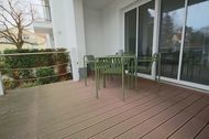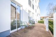Das Appartement befindet sich im Erdgeschoss der Villa, und zwar vom Haupteingang an der Sonnenstraße (Sackgasse) gesehen rechts. Das Schöne daran ist: Da die Villa auf einer kleinen Düne steht, befinden Sie sich im Erdgeschoss nach normalen Maßstäben bereits im Obergeschoss.