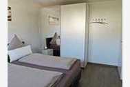 - ein Schlafzimmer in Süd- und ein Schlafzimmer in Nord-Ausrichtung; das 1. Schlafzimmer (Süd) ist mit einem Doppel- und einem Einzelbett versehen, das 2. Schlafzimmer (Nord) verfügt über ein Doppelbett (bei den Doppelbetten handelt es sich um Boxspringbetten)