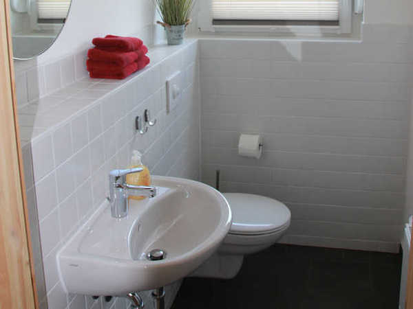 Im separaten Gästebad gibt es ein WC und ein Waschbecken.