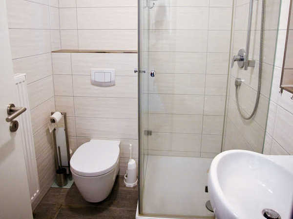 Zum Wachwerden haben Sie im kleinen Badezimmer eine moderne Dusche.