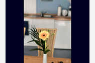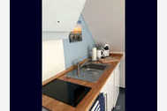 Die ca. 45 qm große helle Wohnung gliedert sich in Wohnzimmer, Schlafzimmer, Küche und Duschbad, die von einem abgeschlossenen Flur mit Garderobe abgehen. Mit Ausnahme des Duschbades sind alle Räume mit Teppichboden ausgelegt. Das Wohnzimmer lädt mit Sofa und Sessel zum gemütlichen Ausklingenlassen des Tages ein. Das Schlafzimmer ist mit einem 180 cm x 200 cm großen Bett, einem Sessel sowie einem Kleiderschrank ausgestattet. An warmen Tagen sorgt hier ein Klimagerät für angenehme Kühle am Abend. Die Fenster haben Verdunkelungsrollos bzw. Vorhänge und sind mit Wärmeschutzfolien versehen. Auch die ebenfalls helle Küche lädt zum Verweilen am Esstisch ein. Sie ist ausgestattet mit Induktionskochfeld, Esse, Kühlschrank, Wasserkocher, Toaster, Kaffeemaschine sowie zusätzlich einer Tassimo Kapselmaschine. Im Duschbad mit Toilette steht eine Waschmaschine zur freien Benutzung zur Verfügung.
